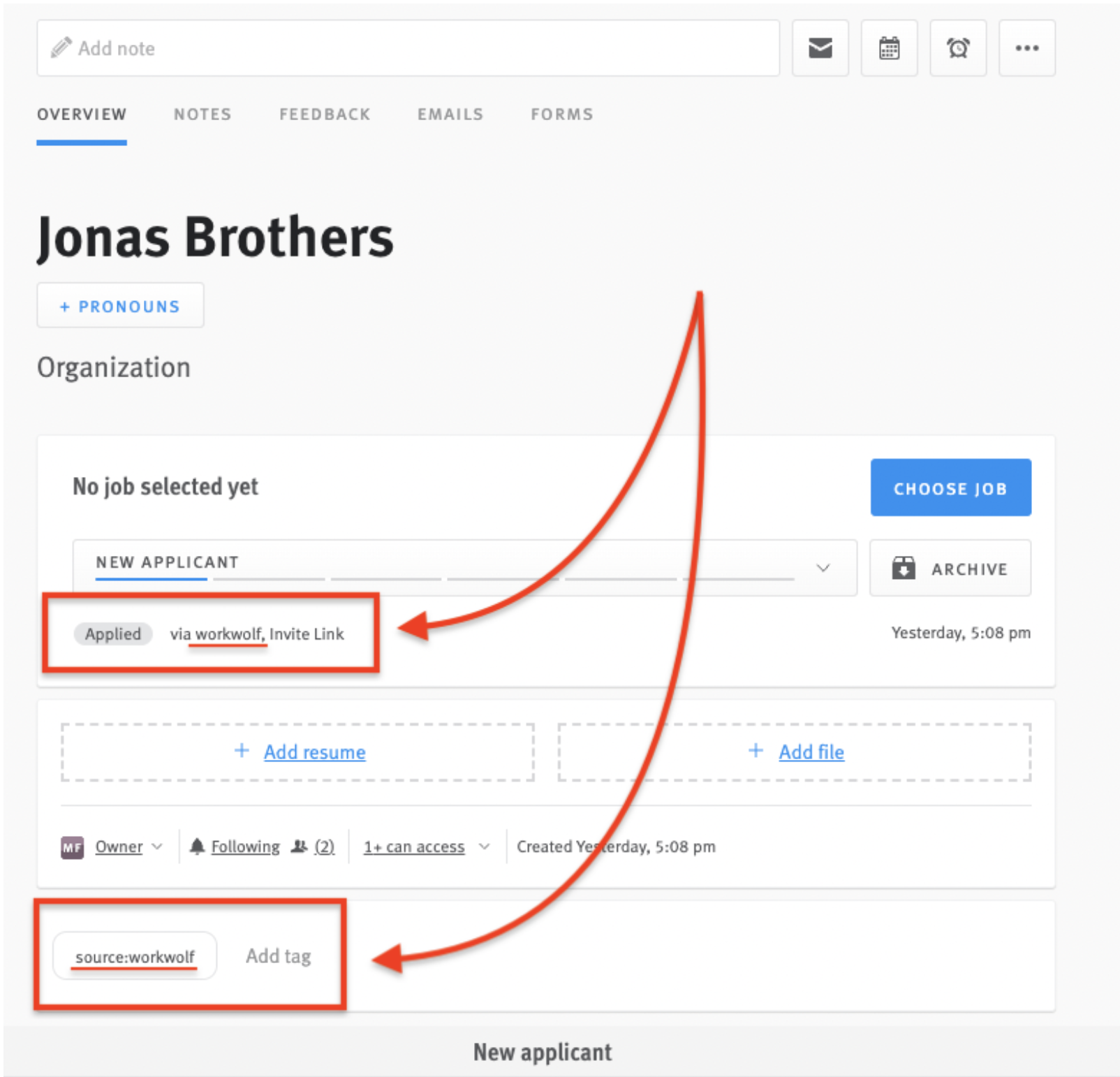 Candidates exported from Workwolf will be flagged with the source "workwolf" and "source:workwolf" tag.