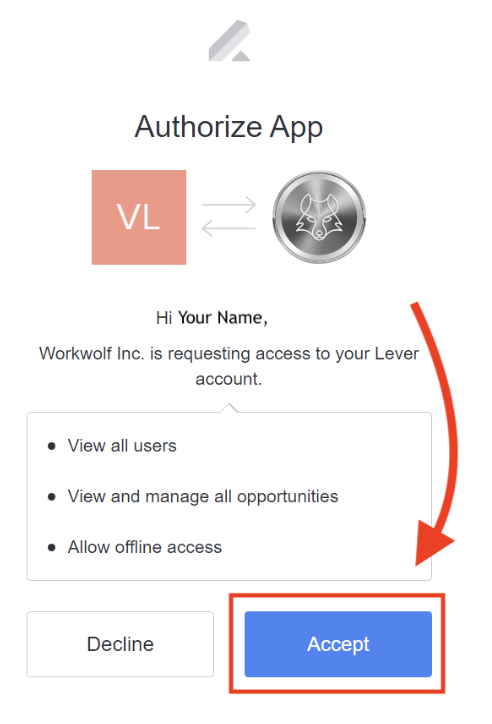Review the list of requested permissions and click Accept to connect your Workwolf account