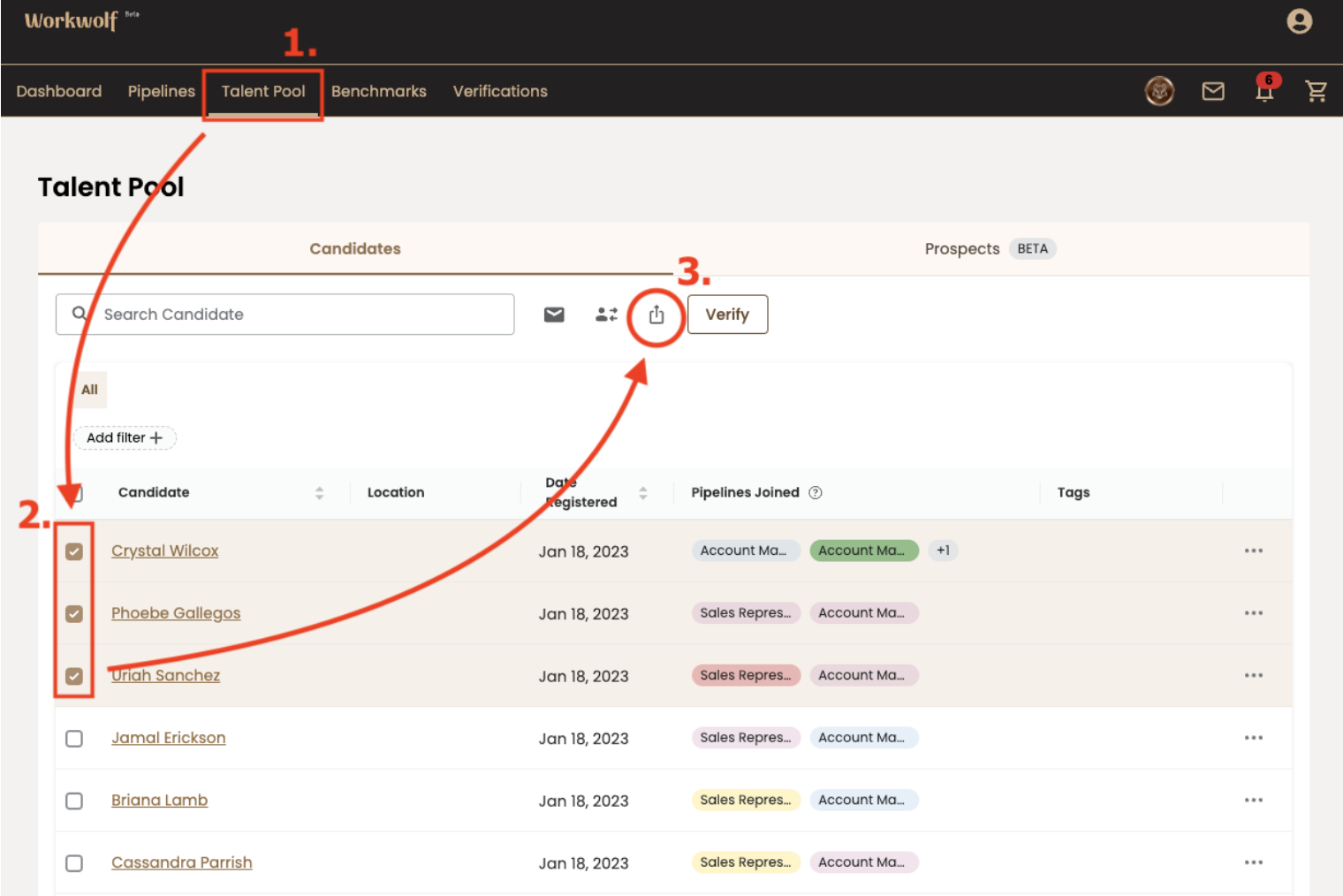 Workwolf currently allows the manual export of candidate records into Lever. Follow the steps below to learn how to move your candidate records from Workwolf to Lever.