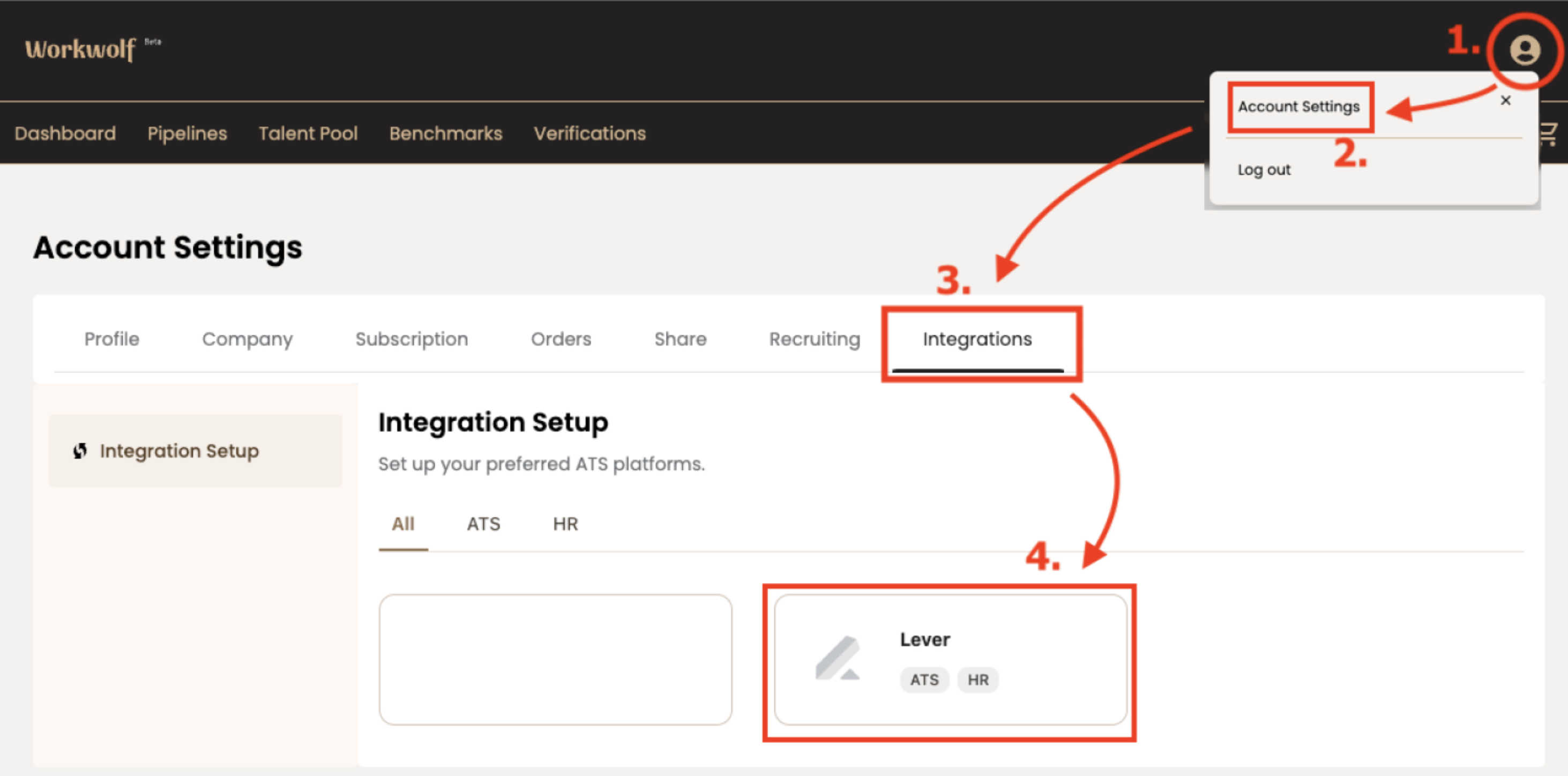 The Lever integration allows Workwolf users to move (export) candidate data from Workwolf directly into their Lever account.